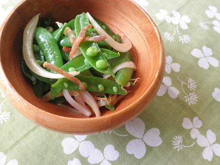 【 作り方 】 1 スナップえんどうはヘタと筋を取って熱湯で1〜2分ほどゆでて ザルにあけ、あおいで冷まし、さやを半分に割っておく。 2 ボウルにしょうゆと練り辛子を入れて混ぜ合わせ、1を加えて 軽く混ぜ合わせる。 3 たまねぎは繊維に添って薄くスライスし、ベーコンは細く切る。 フライパンに植物油小さじ1(分量外)とベーコンを加えて火にかけ、 ベーコンがカリカリになったらたまねぎも加えてさっと炒め合わせ、 熱いうちに2のボウルに加えてよく混ぜ合わせる。 器に盛っていただく。