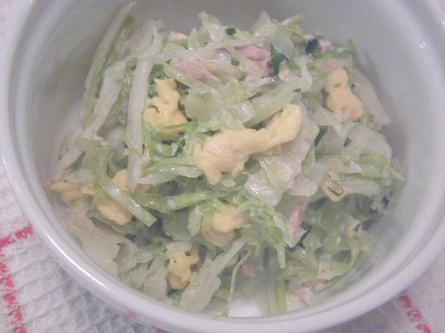加えて和え、味を見て塩・こしょうで調味する。器に盛っていただく。
