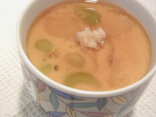 3 器に等分に1のそらまめと豆腐を入れ、2のたまご液を等分に注いで沸騰した